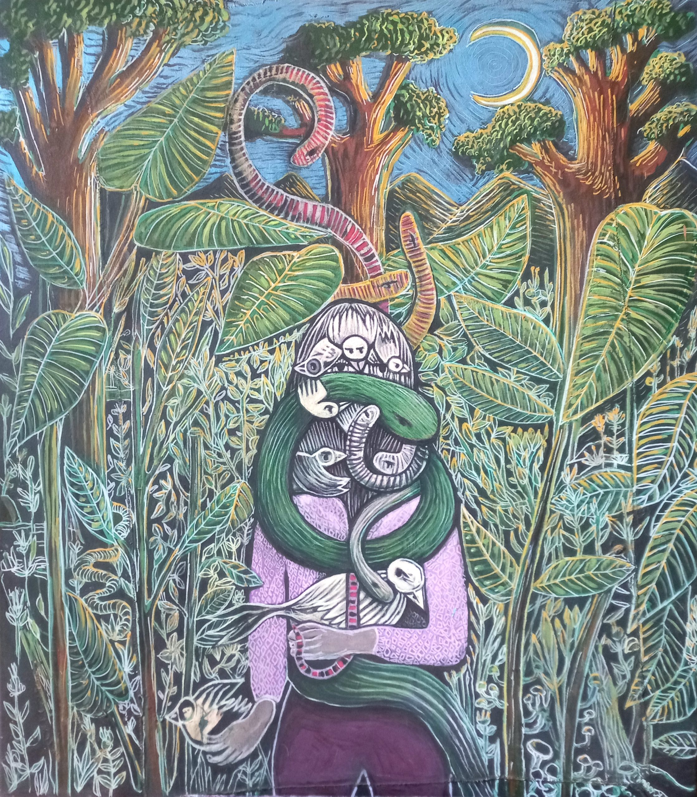 Pintar es escribir para quién sepa leer los sÃmbolos y códigos que el arte trae consigo, pintar es un acto primitivo y a la vez sofisticado, las imágenes y nuestra búsqueda de entenderlas es esencial a nuestra sobrevivencia, interpretamos lo que vemos en términos sencillos de contradicción, aceptación o negación, la pintura contiene el lenguaje de los sÃmbolos representando intenciones, emociones y conceptos, la profundidad de su simbologÃa está ligada a la cosmovisión que se tenga, y la potencia de intencionar, está determinada por la magia de la imagen para obrar por sobre el mundo