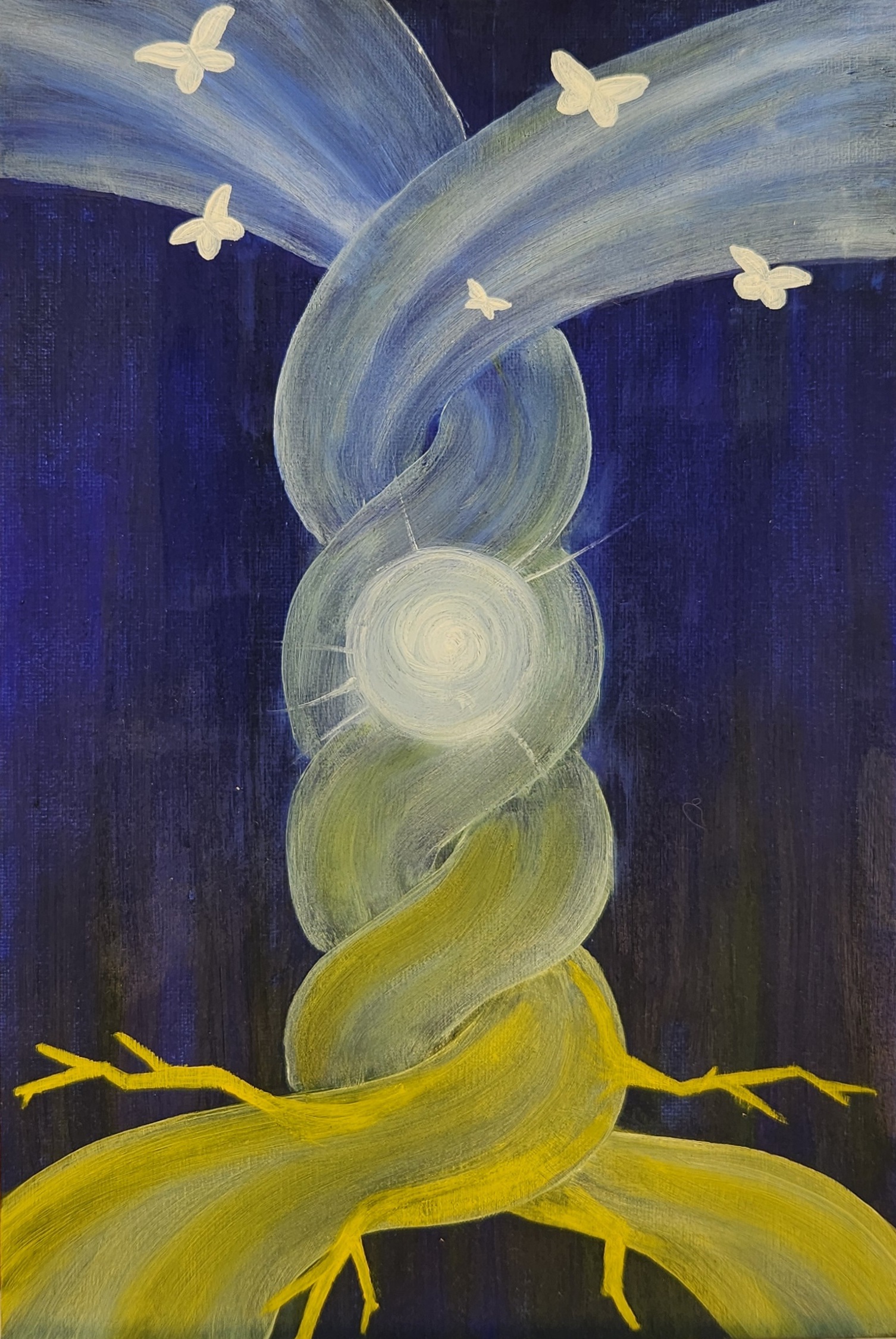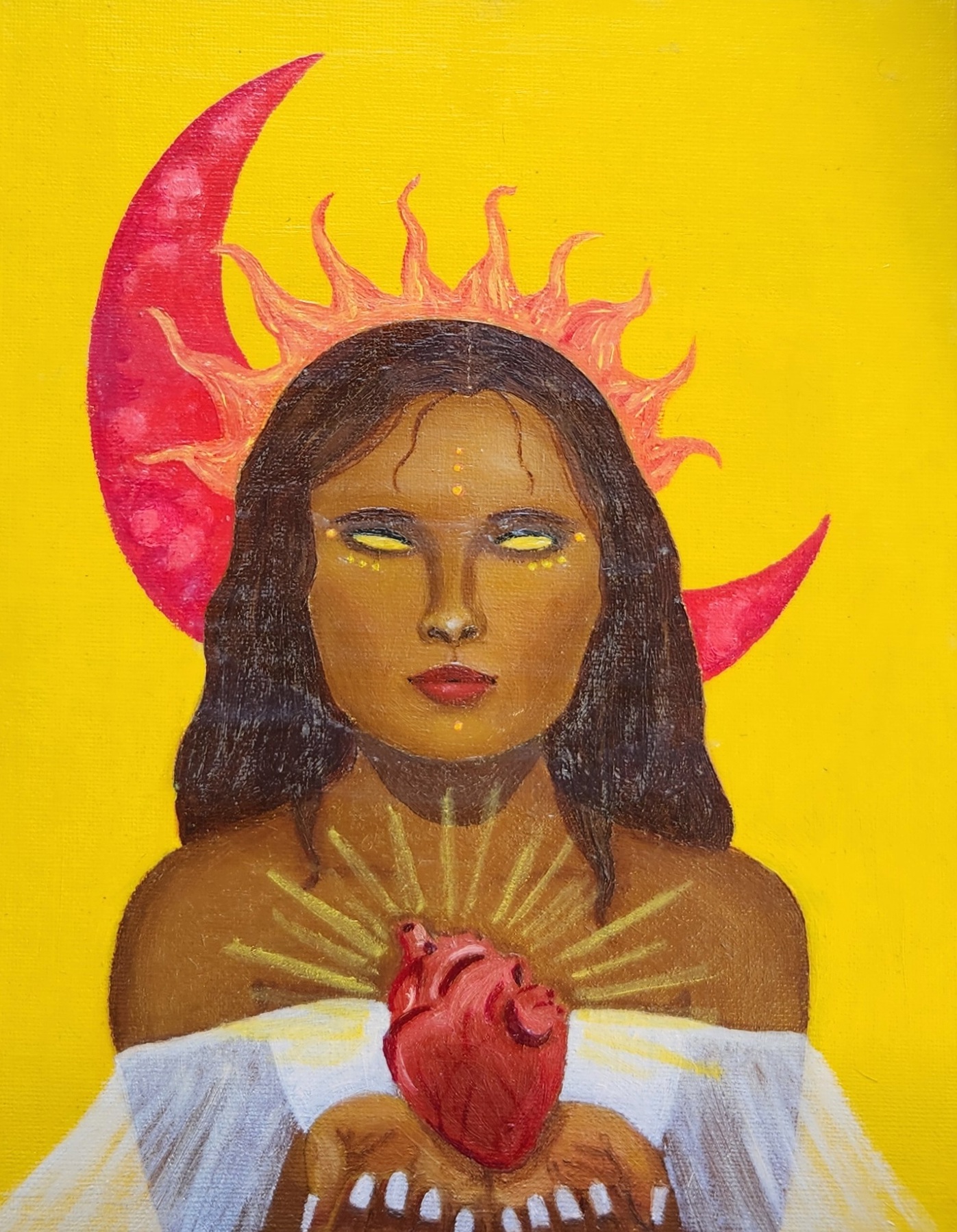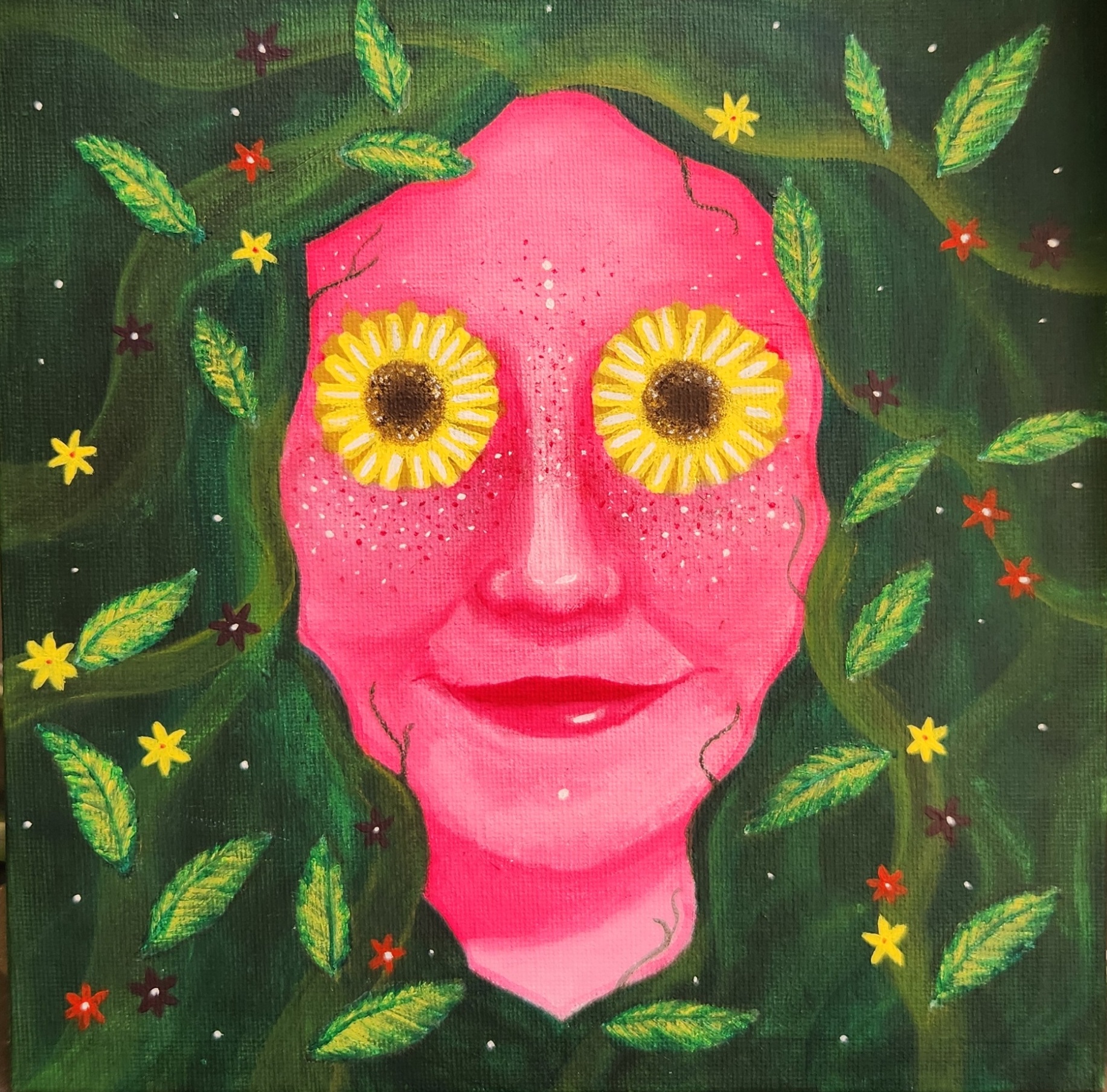 Karla, artista autodidacta desde la infancia, refleja su emocionalidad a través de figuras femeninas en contextos oníricos y surrealistas usando técnicas en oleo y acrílico.