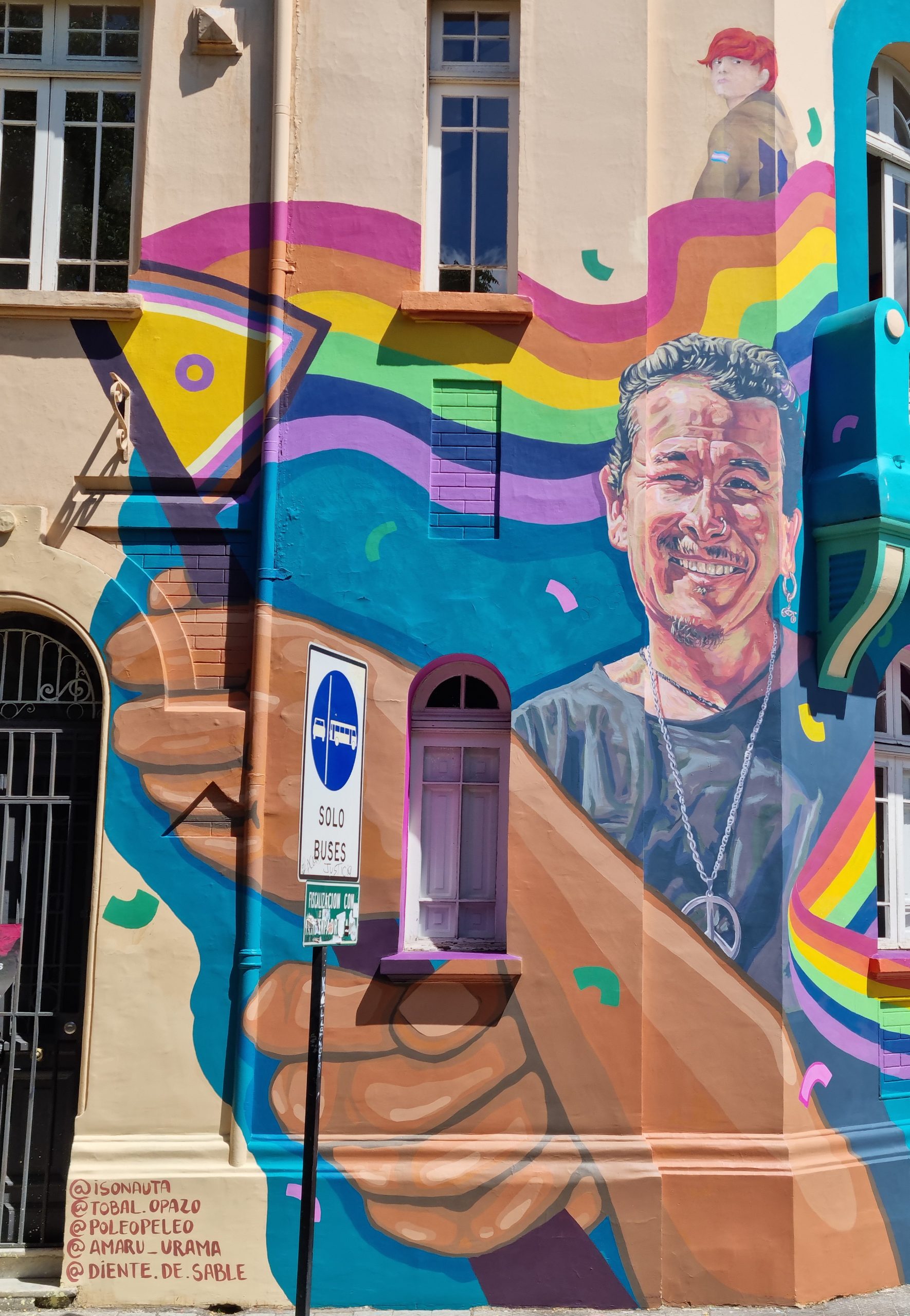Pinta para situar en la esfera pública existencias históricamente invisibilizadas, representándolas desde la dignidad y la resistencia. Su trabajo abarca tanto pintura de caballete como murales de gran escala, donde la dimensión monumental se convierte en gesto político. Paralelamente, expande su práctica hacia la gestión y curaduría, creando espacios colectivos de cuidado y visibilidad para artistas LGBTIQANB+.