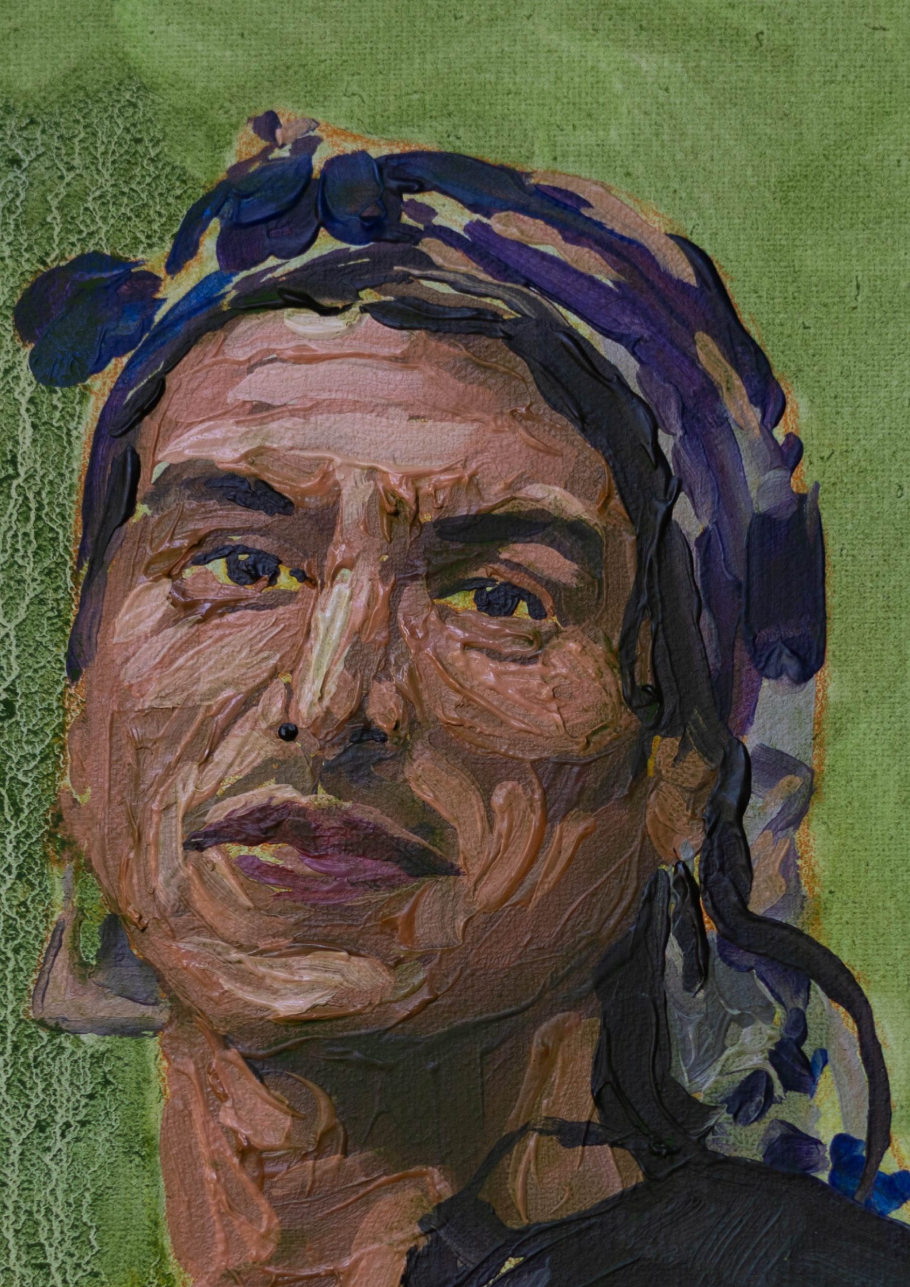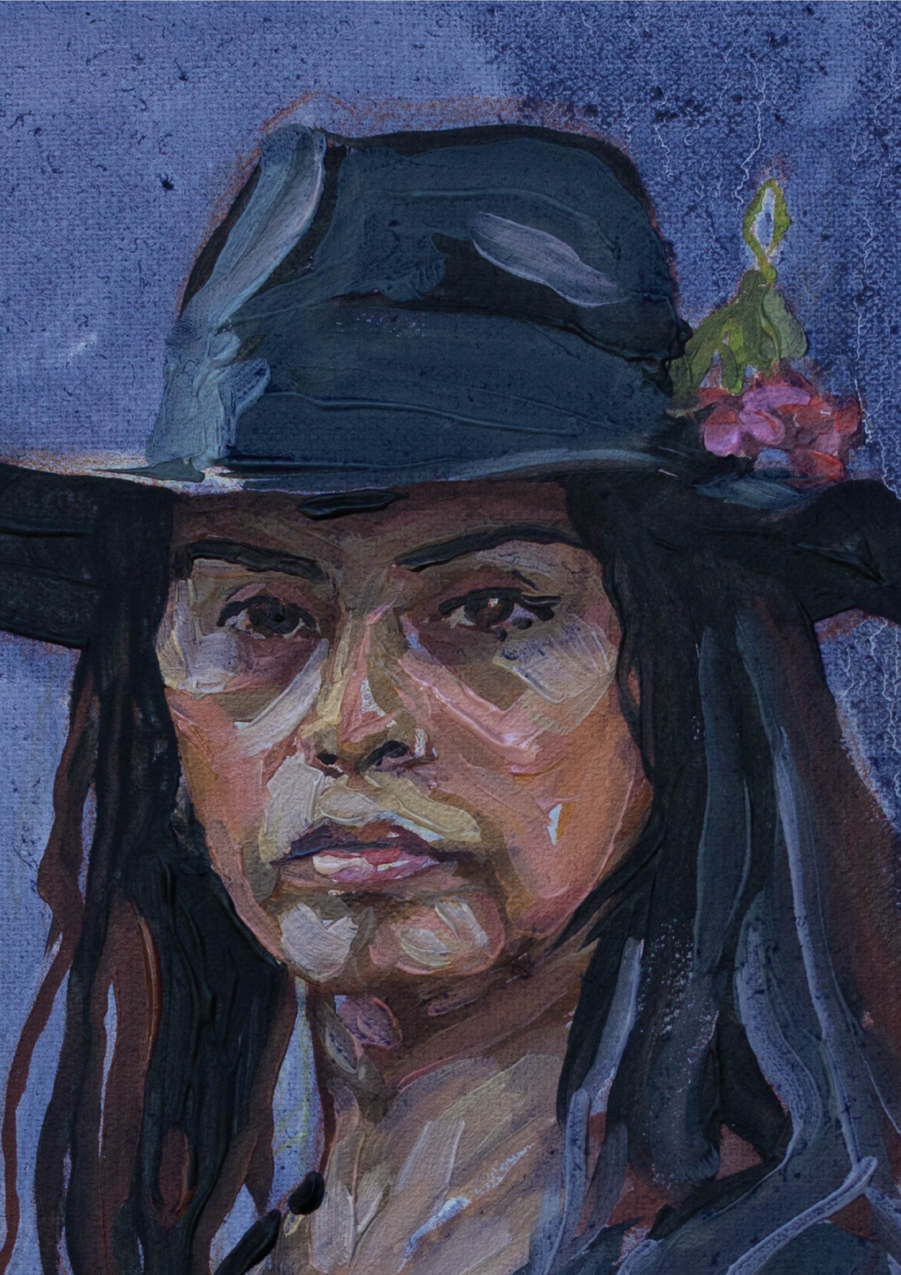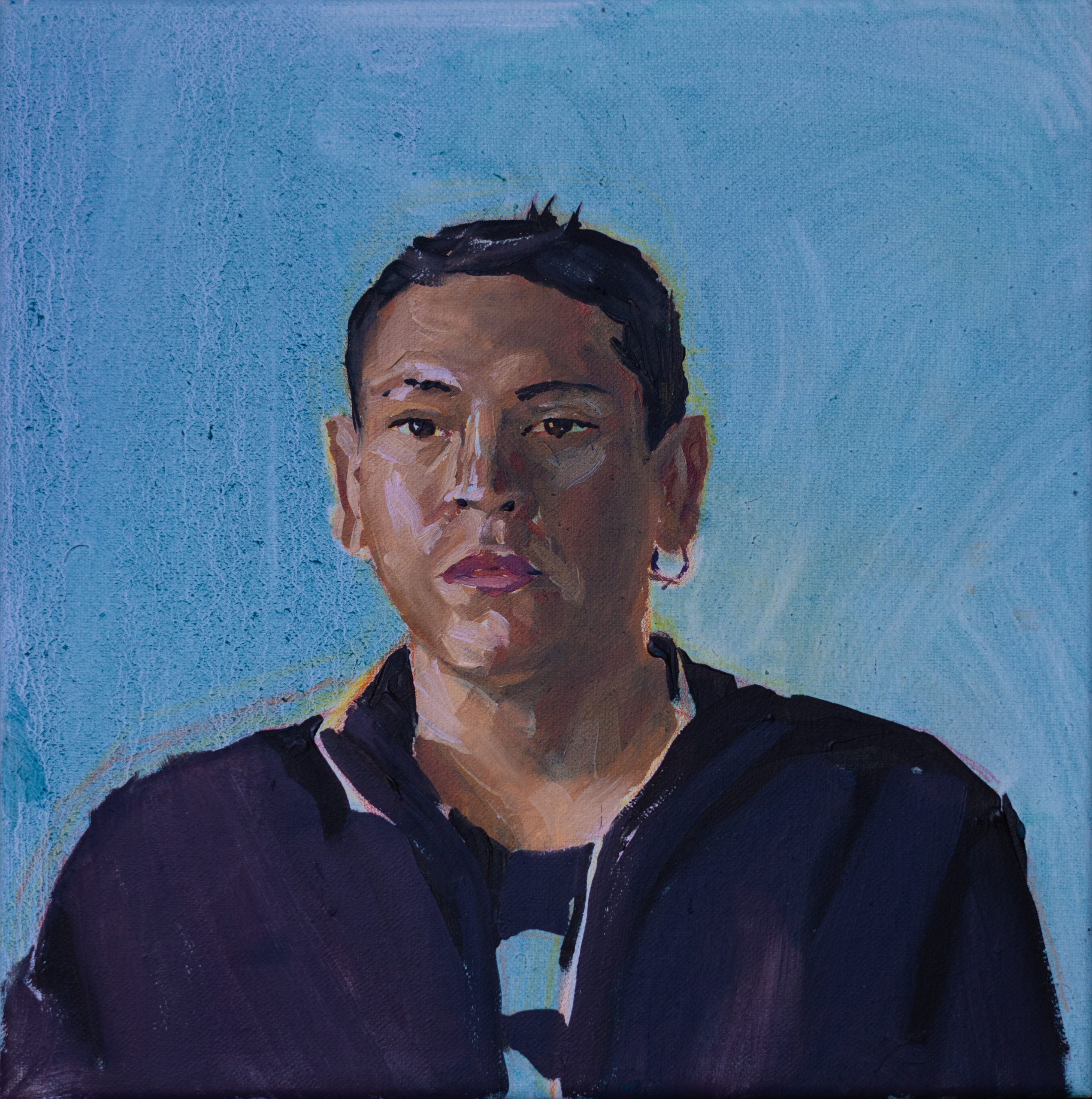 Artista visual mapuche travesti, su práctica pictórica —que denomina “Realismo Travesti”— se centra en el retrato como dispositivo de memoria y homenaje. A través del óleo, el esmalte al agua y otras técnicas pictóricas, explora la realidad travesti, trans y no binarie en Chile, en diálogo con luchas indigenistas, anticoloniales, antirracistas y de diversidad corporal.